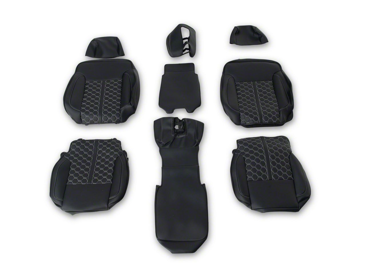 Durable and Long-Lasting. Crafted from high-quality artificial leather with robust stitching, these seat covers are built to last. The all black color with honeycomb accent adds a unique touch to your interior while maintaining a sleek and modern look. Lastly, with a waterproof and soft-to-the-touch surface, these seat covers are easy to clean and maintain.