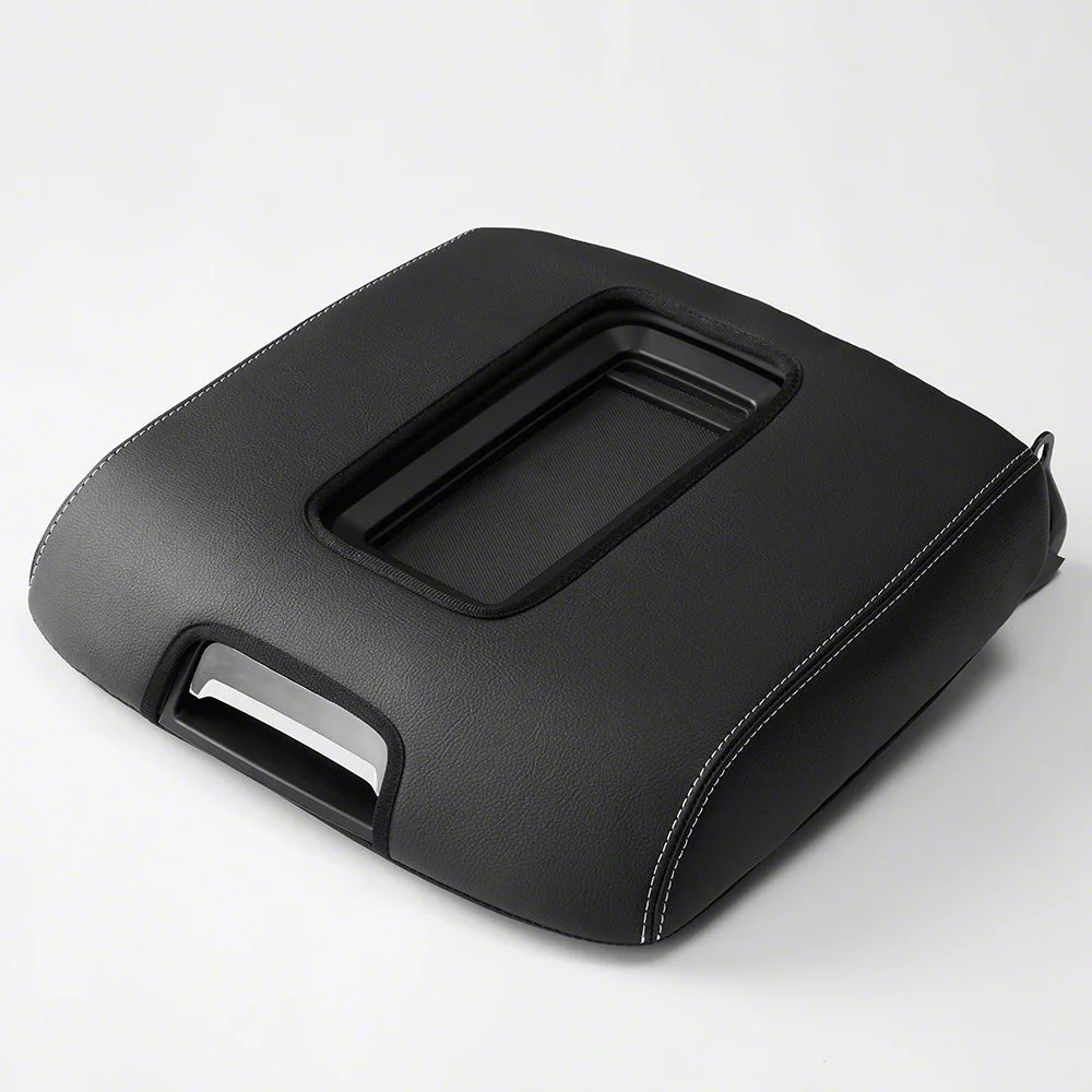 Kustom Interior Premium Artificial Leather Center Console Lid Armrest Cover; Black with White Stitching (15-19 Silverado 2500 HD w/ Bucket Seats)Find parts that fit my vehicle