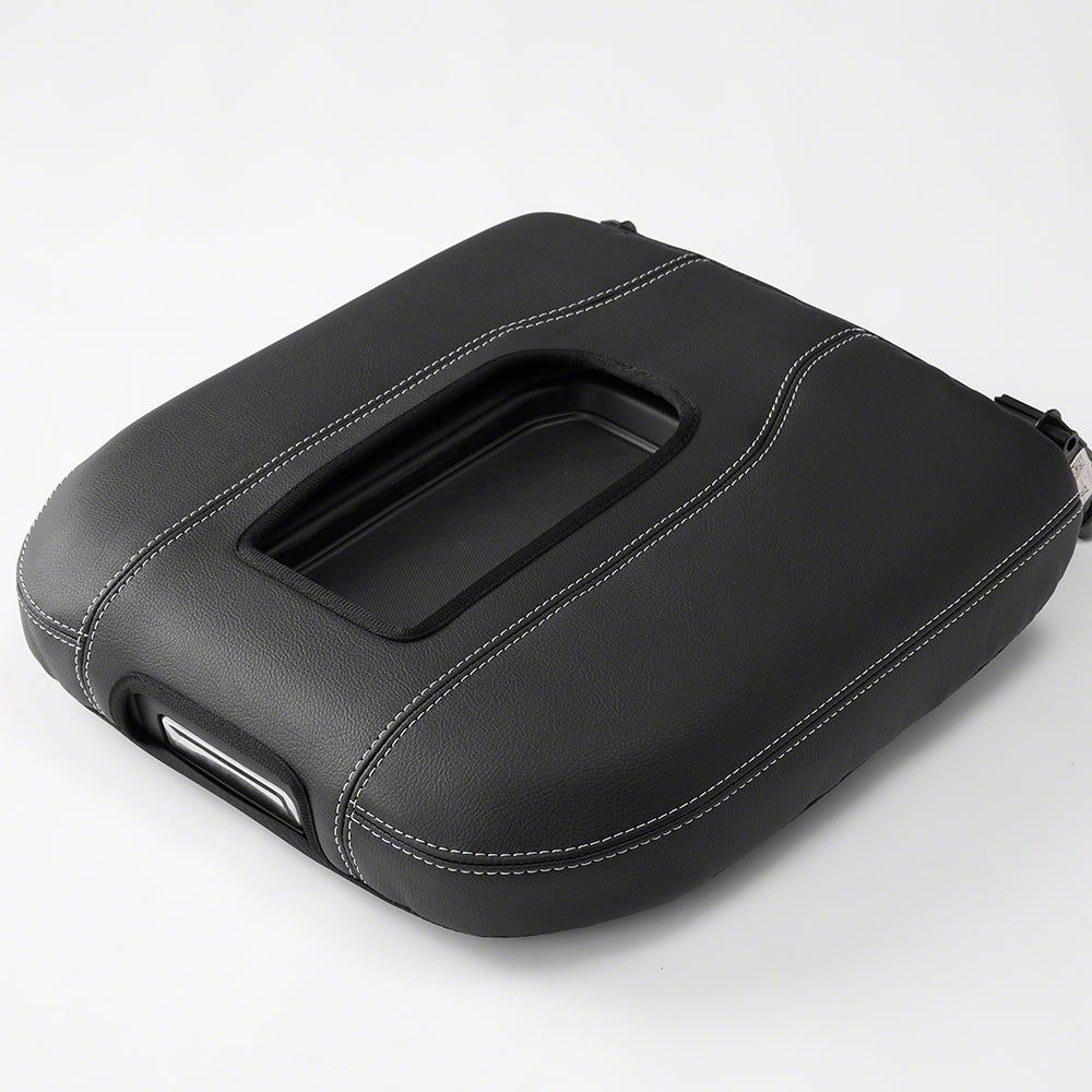 Kustom Interior Premium Artificial Leather Center Console Lid Armrest Cover; Black with White Stitching (19-26 Silverado 3500 HD w/ Bucket Seats)Find parts that fit my vehicle