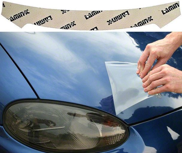 This product is a strong and invisible layer of protective film that keeps your paint looking new. It is adhesive-backed and applies directly to the paint and protects up to 12" of front end hood protection.