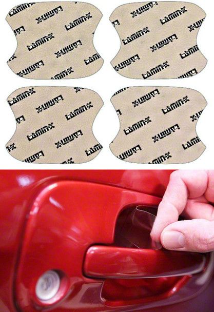 Premium Paint Protection Solution. The Lamin-X Door Handle Cup Paint Protection Film is designed to shield the area behind the door handles of your Ford F-350 Super Duty from scratches and wear. With pre-cut precision for a perfect fit, it offers a sleek, high-gloss finish while preserving your vehicle's paint against daily use and potential damage.