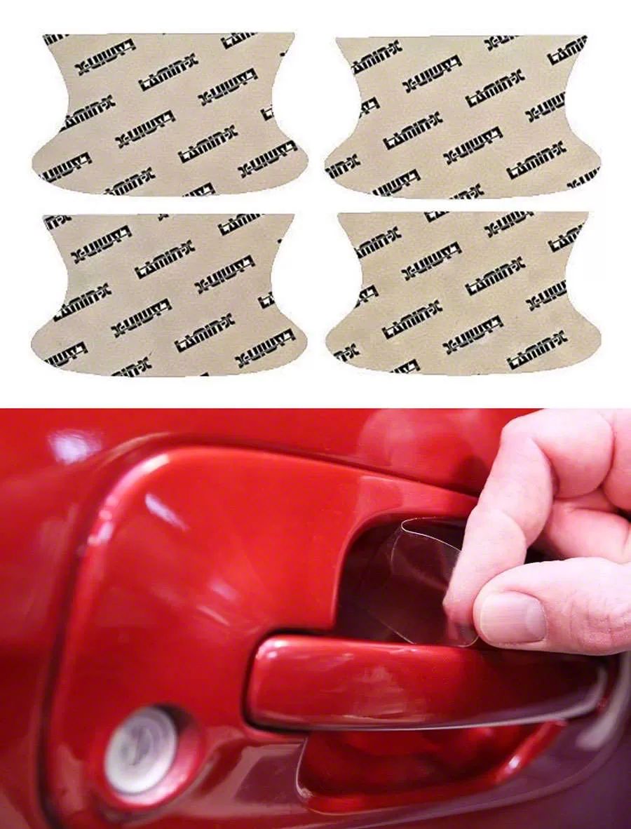 Description. Even the smallest details matter to you. One of the most prone areas to get scratched and scuffed from keys or fingernails is your door cup area. You can now prevent and stop that scuffing and scratching by protecting the paint with the Lamin-x Door Cup Paint Protection. Made of the same material used for Clear Bras, Lamin-x Door Cup Paint Protection film will keep your door cups looking like new, without changing the appearance Precut for your vehicle for easy installation.