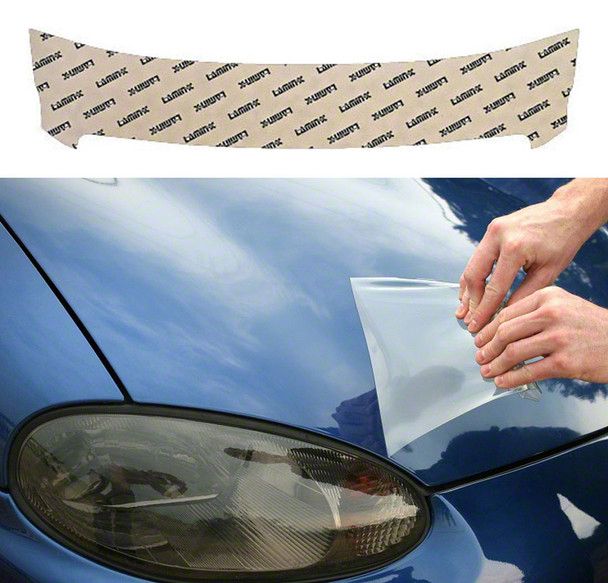 This product is a strong and invisible layer of protective film that keeps your paint looking new. It is adhesive-backed and applies directly to the paint and protects up to 12" of front end hood protection.