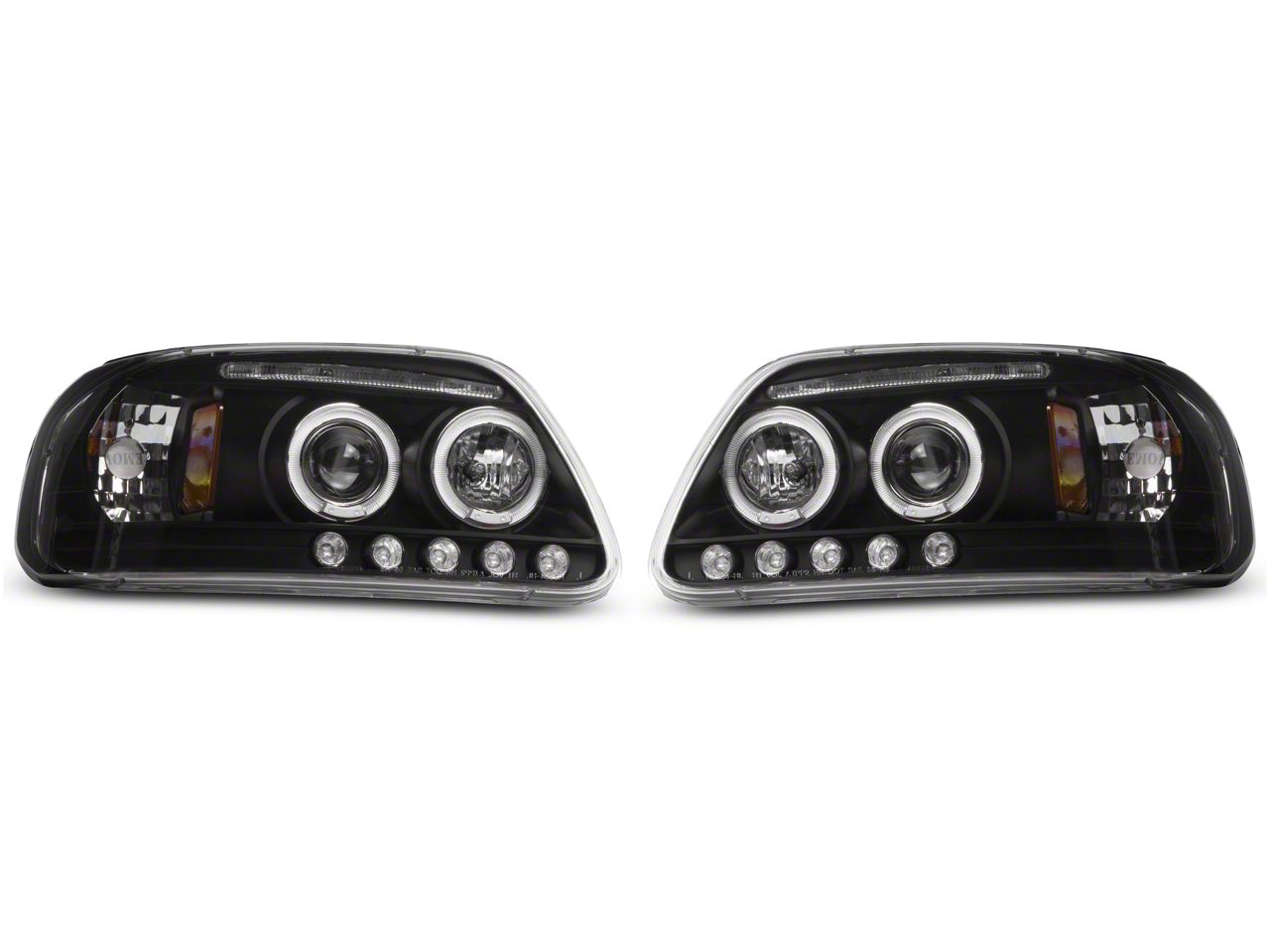 Upgraded Styling. Bring the power of strong, brilliant, long-lasting LED halo projector-pattern headlights to your Ford F-150 with these Dual Halo Projector Headlights. Featuring a stealthy-looking black housing, these headlights melt away the night with the intense radiance of double "angel eyes", and are covered by a 6 month limited warranty. They also feature LED Daytime Running Lights.