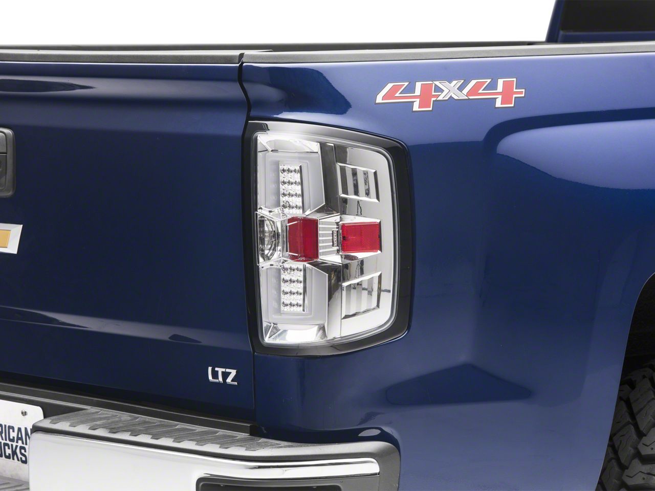 Stylish Tail Lights That Improve Safety. It’s time to upgrade the plain tail lights of your Silverado and replace them with these LED Tail Lights that are not only super bright but also super stylish. The red LED bulbs are enhanced by fiber optic stripes, creating high-quality illumination that doesn’t blind pedestrians or fellow drivers. The modern look, meanwhile, is further improved by the shiny chrome housing and crystal clear lens.