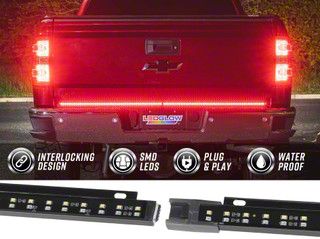 Improve Visibility and Style. The LEDGlow Red Tailgate Light Bar with White Reverse Lights offers a vibrant and brighter light output, ensuring enhanced visibility for your vehicle. With its 60-inch length and integrated 108 white and 108 red SMD LEDs, this light bar provides a striking and functional upgrade, perfect for improving safety and style on the road.