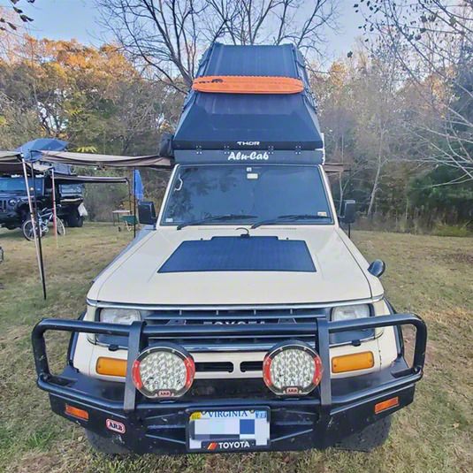 Advanced Hood Solar Panel. The LensunSolar Hood Solar Panel Complete Kit; 95-Watt offers a flexible and efficient solar charging solution that mounts directly onto the vehicle’s hood. It maintains and charges vehicle or auxiliary batteries and compatible power stations, ensuring reliable power for electronics during extended camping or off-road excursions without engine use.