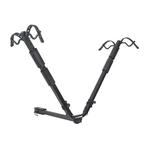 Let’s Go Aero NEO-2 Hitch Mount Two Bike V-Rack™ offers universal bicycle fit with a modular design to compliment the on-the-go lifestyle. The V-Wings carry two bikes of all sizes and frames suspended by the wheels and fits 1.25in and 2in hitches receivers. The ultra-light and modular design is easily adjustable and removable for compact storage, and has a welded design for no tool assembly ease..