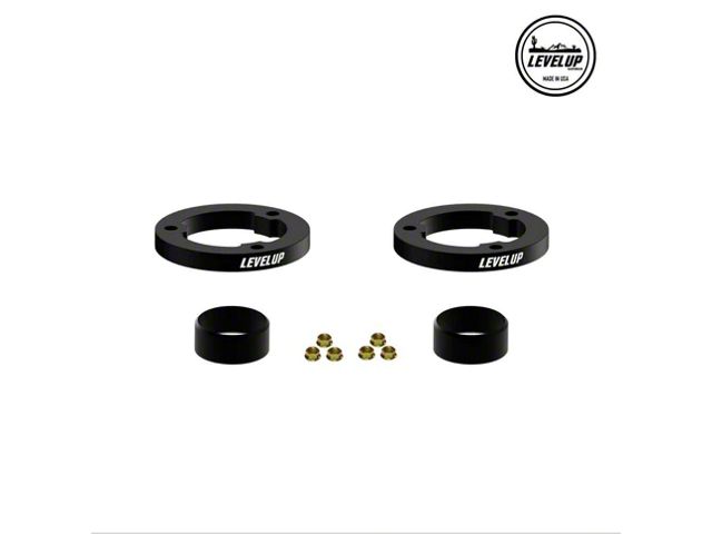 Front Lift. Made for the GMC Canyon models, excluding AT4X models, this Level Up Suspension Lift Kit comes in a matte black finish. Built to give your ride an easily revertible front lift of 2 inches, this lift kit has 2 upper and 2 lower strut spacers crafted from 6061-T6 aluminum and high strength steel. Made to maintain stock ride quality, this kit is made in the USA and increases the maximum tire size to 32 inches.