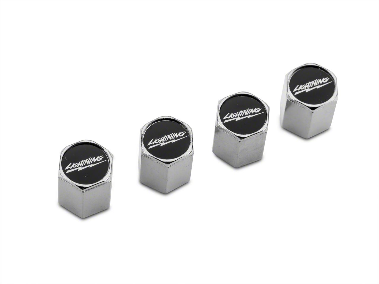 Signature Lightning Logo on Each Cap. The Ford Lightning logo means fast. And if you're the proud owner of a F-150, little accents are a great way to show your SVT pride and accent your one-of-a-kind Lightning wheels. These valve stem caps are emblazoned with the Lightning logo and are officially licensed by Ford Motor Company. Their finish is permanent, fade resistant, waterproof, and scratch resistant - so you know they'll handle all the abuse that mud, gravel, dirt can heap on them and still look sharp.