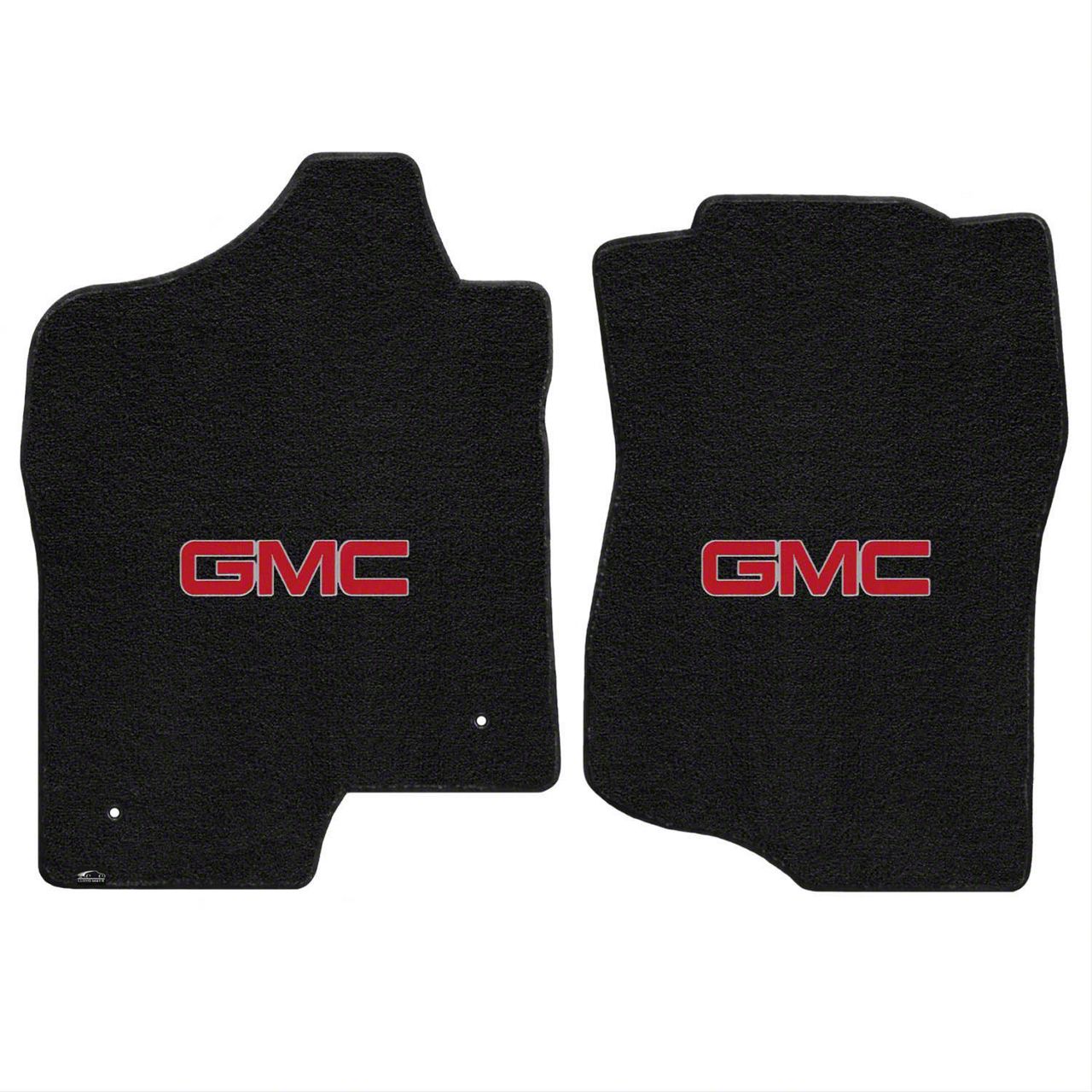 Stylish Floor Protection. The Lloyd Ultimat Front Floor Mats is a superior automotive accessory designed to enhance your Sierra 2500. This product boasts a sleek black design, complemented by a striking red GMC logo, adding a touch of sophistication to your car's interior. Featuring a non-skid Tractionbac rubber backing, these mats offer reliable grip, preventing slippage and keeping them securely in place during your journeys.