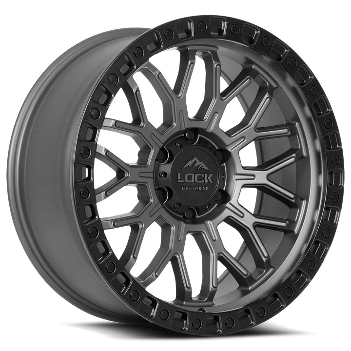 Lock Off-Road Combat Matte Grey with Matte Black Ring 8-Lug Wheel; 20x10; 18mm Offset delivers a bold and modern aesthetic, ideal for enthusiasts seeking a refined yet assertive look for their vehicle. With its standout design and distinct finish, this wheel enhances the vehicle's visual stance and street presence. The precise craftsmanship and premium aluminum build reflect Lock Off-Road's dedication to quality and distinctive design. Whether parked or in motion, this wheel draws attention with its clean, aggressive styling.