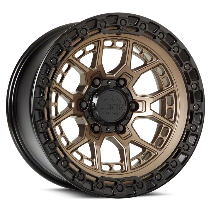 Lock Off-Road Commando Matte Bronze with Matte Black Ring 6-Lug Wheel; 17x9; 0mm Offset delivers a bold and modern aesthetic, ideal for enthusiasts seeking a refined yet assertive look for their vehicle. With its standout design and distinct finish, this wheel enhances the vehicle's visual stance and street presence. The precise craftsmanship and premium aluminum build reflect Lock Off-Road's dedication to quality and distinctive design. Whether parked or in motion, this wheel draws attention with its clean, aggressive styling.