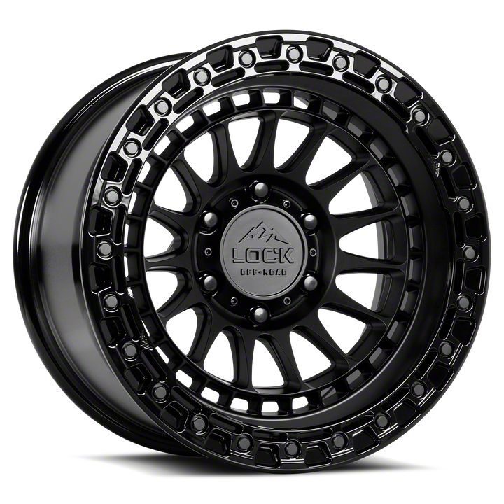 Lock Off-Road Mojave Matte Black with Gloss Black Ring 8-Lug Wheel; 17x9; 12mm Offset delivers a bold and modern aesthetic, ideal for enthusiasts seeking a refined yet assertive look for their vehicle. With its standout design and distinct finish, this wheel enhances the vehicle's visual stance and street presence. The precise craftsmanship and premium aluminum build reflect Lock Off-Road's dedication to quality and distinctive design. Whether parked or in motion, this wheel draws attention with its clean, aggressive styling.