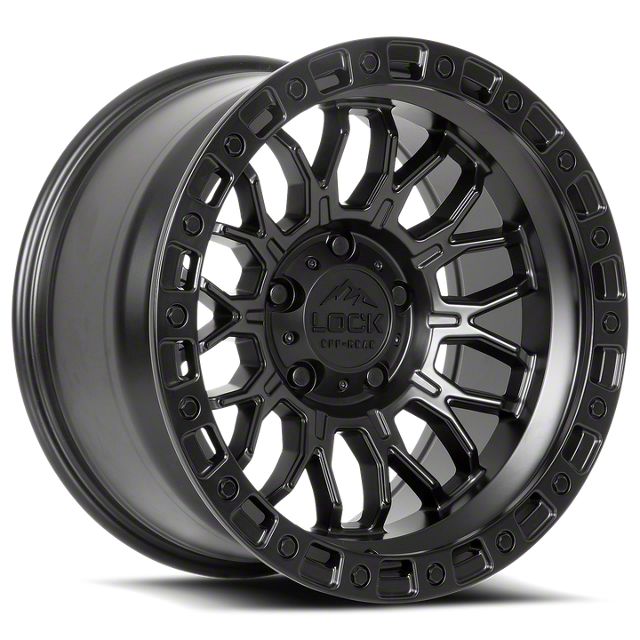 This 20x10 Lock Off-Road Combat Matte Black with Matte Black Ring 8-Lug Wheel; 20x10; 18mm Offset is completed in a high-quality matte black finish with matte black accents that will be the envy of everyone. For added protection and looks, there is a clear coat designed to handle whatever the road, or beyond, throws at it.