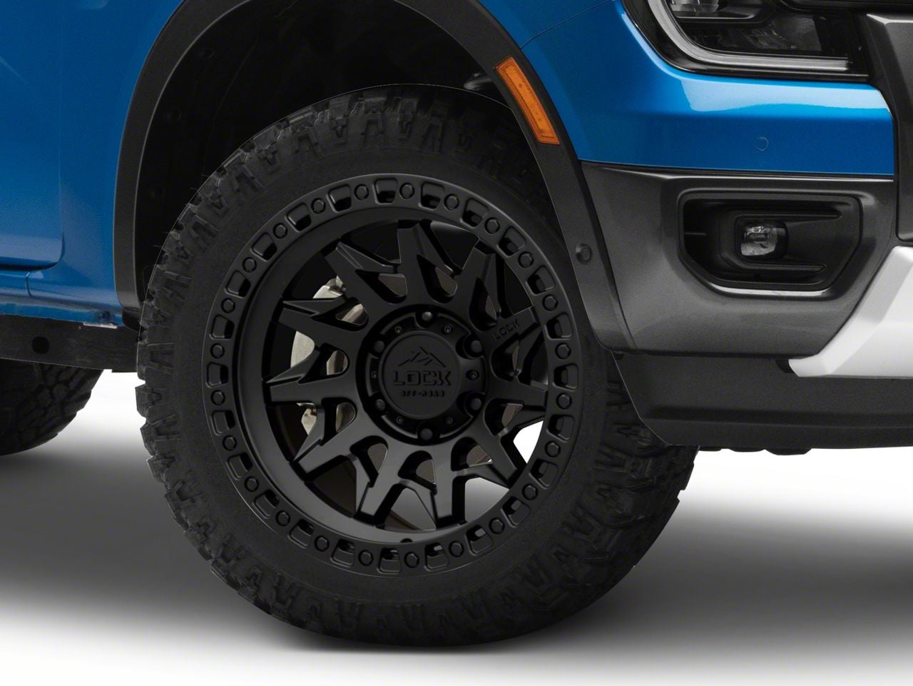 Application. This Lock Off-Road wheel, Lunatic Matte Black with Matte Black Ring 6-Lug Wheel; 20x10; -18mm Offset, features a backspace of 4.791 Inch, 121.7mm and a bolt pattern of 6 x 139.7mm . These specifications help ensure proper wheel alignment and enhance driving stability. It is designed to fit the 2024-2026 Ranger models. Sold individually.
