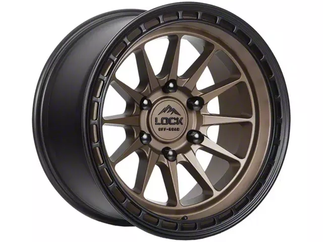 Lock Off-Road Baja Matte Desert Bronze with Matte Black Ring 6-Lug Wheel; 17x9; 0mm Offset. The Lock Off-Road Baja Matte Desert Bronze with Matte Black Ring 6-Lug Wheel offers a striking balance of style and refinement. Its unique design accentuates the vehicle's aesthetic, while the premium construction underscores its robust nature. This wheel is a perfect choice for those seeking both elegance and a strong visual statement.