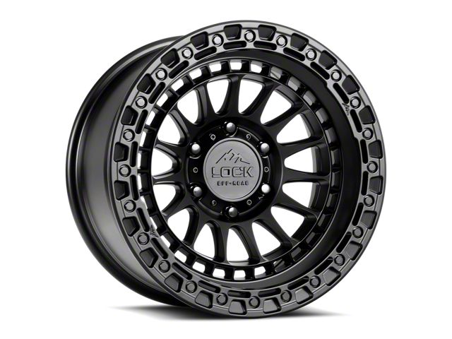 This 20x9 Lock Off-Road Mojave Matte Black with Matte Black Ring 6-Lug Wheel; 20x9; 0mm Offset is completed in a high-quality matte black finish with matte black accents that will be the envy of everyone. For added protection and looks, there is a clear coat designed to handle whatever the road, or beyond, throws at it.