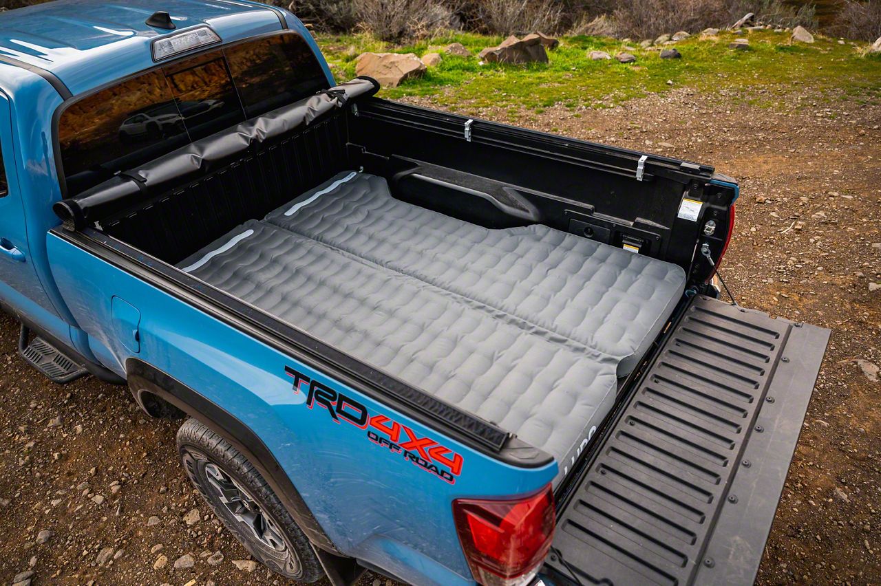 The Luno AIR Truck Bed Mattress is easy to set up and a dream to snooze on. The ultra-tough, ultra-comfy, AIR Truck Bed Mattress will revolutionize your life on the dirt road. This mattress isn’t a rectangle for a reason. Our engineers factor wheel wells into the design, ensuring an optimized and comfortable sleeping area in most Mid Size Trucks with 6 Foot Beds. •The Luno AIR Mattress is meticulously tailored for a perfect fit, providing an optimized and comfortable sleeping area• Ultra comfortable.• Easy Set Up: The Luno AIR Mattress can be inflated in just three minutes with the included electric air pump, and can be packed down even more quickly. Simply roll it up and pack it away—no cursing required.• Durable, puncture-proof fabric• Sleeps 2 people• 12V electric pump included• Ultra Packable Design for easy storage"