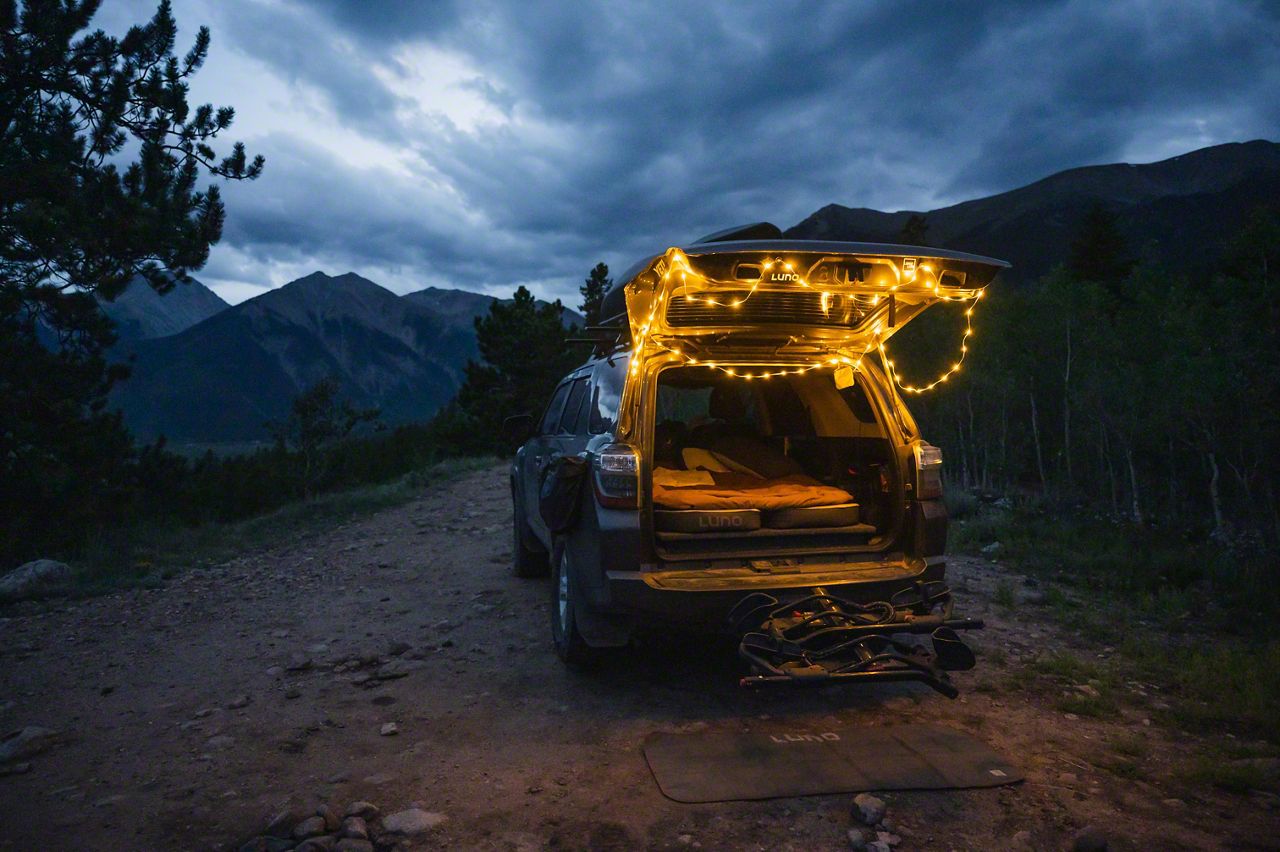 Illuminate your adventures with our versatile LED Camping String Lights, designed to cozy up your nights outside. Featuring seven variable light modes and adjustable brightness, you can create the perfect ambiance for any occasion. This kit includes a rechargeable USB-C battery pack that provides eight hours of continuous use, a translucent storage bag that doubles as a lantern, and suction cups if you want to hang the lights on your adventure rig.