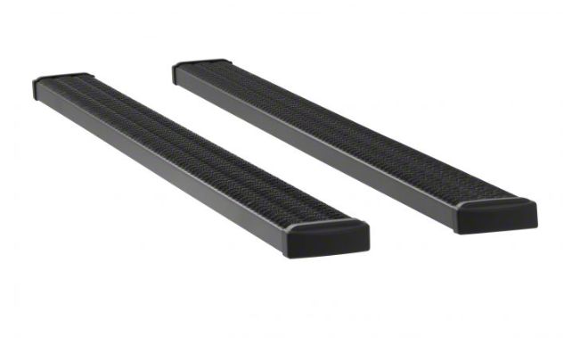 Durable Aluminum Build Quality. These Grip Step 7-Inch Wheel-to-Wheel Rocker Mount Textured Black Running Boards are manufactured from durable high-grade aluminum, a material that’s known for its excellent strength-to-weight ratio, and corrosion resistance. These running boards come with rounded plastic end caps that helps maintain a sleek look. Finally, these boards are finished in a textured black powder coating for added corrosion resistance.