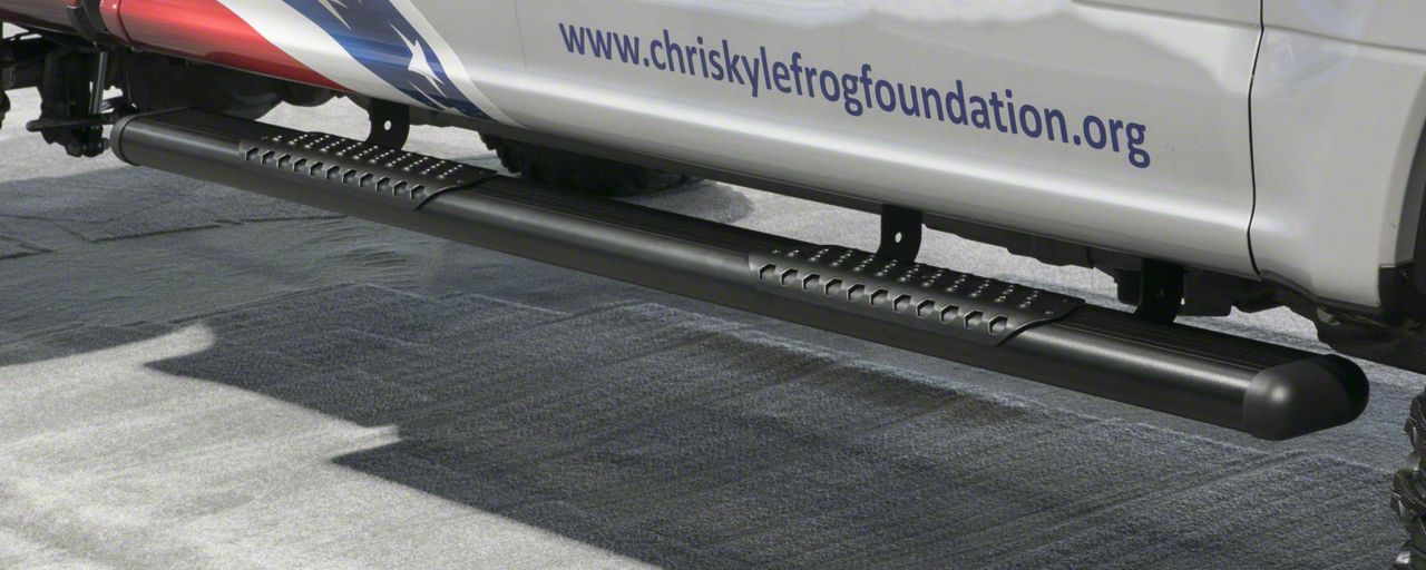Make Truck Access More Secure. Enable secure access into your Ford F-150 truck with these O-Mega II 6-Inch Textured Black Oval Side Step Bars. These step bars’ wide platform works seamlessly with heavy-traction, dimpled aluminum step plates to provide you and your passengers with a stable foothold when entering and exiting your truck. Its all-black color, on the other hand, adds a dynamic design cue to the sides, transforming your truck’s look. Additionally, these step bars help keep your finish free from scuff damage, thanks to its wide design.