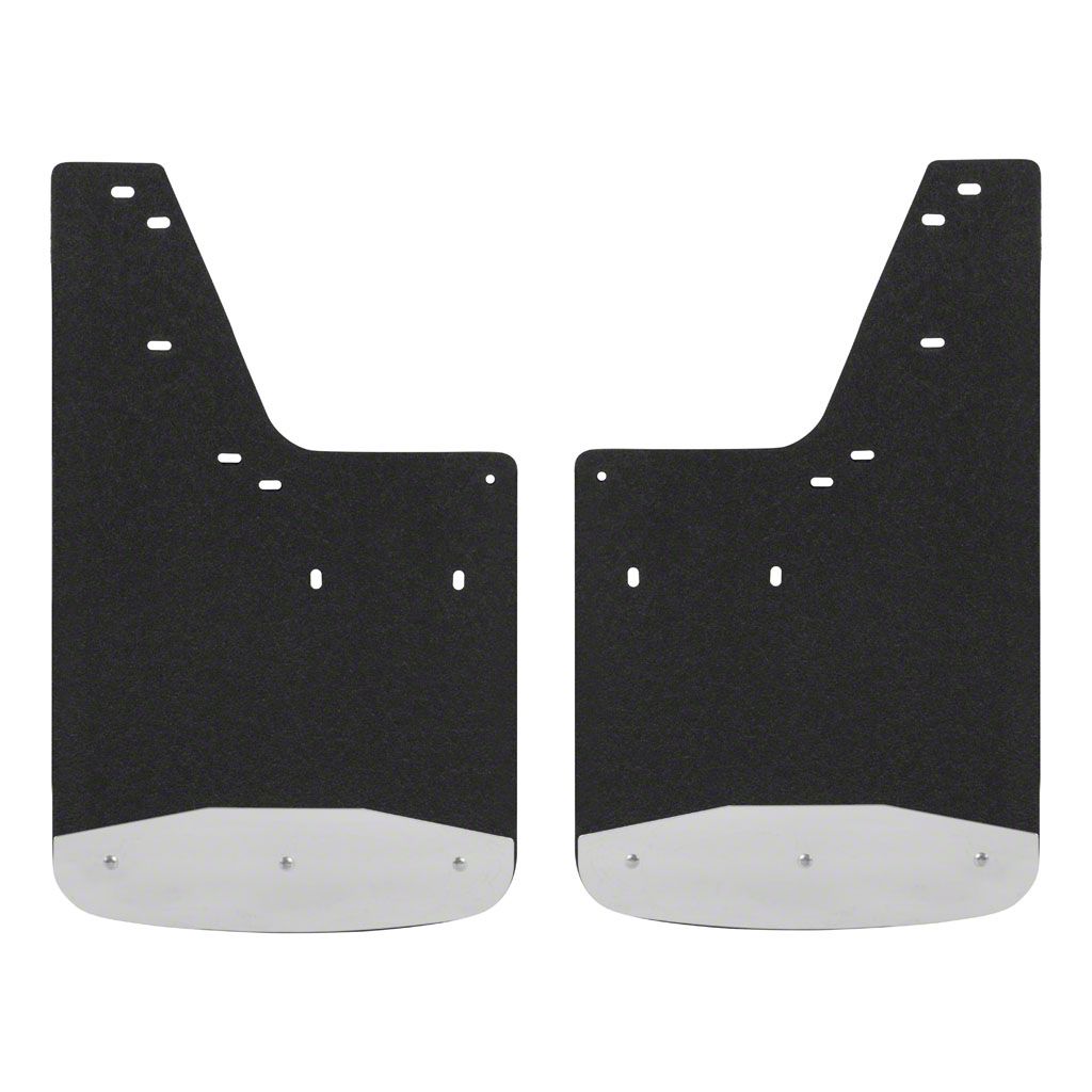 Long-Lasting Recycled Rubber Material. These Textured Rubber Front or Rear Mud Guards are made from 3/8-inch thick recycled rubber material. By getting this product, you’re not only protecting your truck, you are also helping the environment heal and recover. These mud guards come with polished steel plates at the bottom, adding another strong layer that can absorb heavy abrasions from daily drives. They come in black rubber that looks great on any body color.
