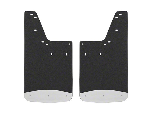Environment-Friendly Recycled Materials. The Front or Rear Mud Guards are made using long-lasting recycled rubber material. Installing these not only protects your truck, but also helps repurpose discarded rubber that just ends up polluting the environment. These mud guards are 3/8-inch thick, giving them the rigidity to absorb heavy abrasions, but also have the right amount of flex. They have bolted-on polished steel plates at the bottom to add style to your mud guards. The black textured rubber finish fits the overall look of your off-roading Dodge RAM.