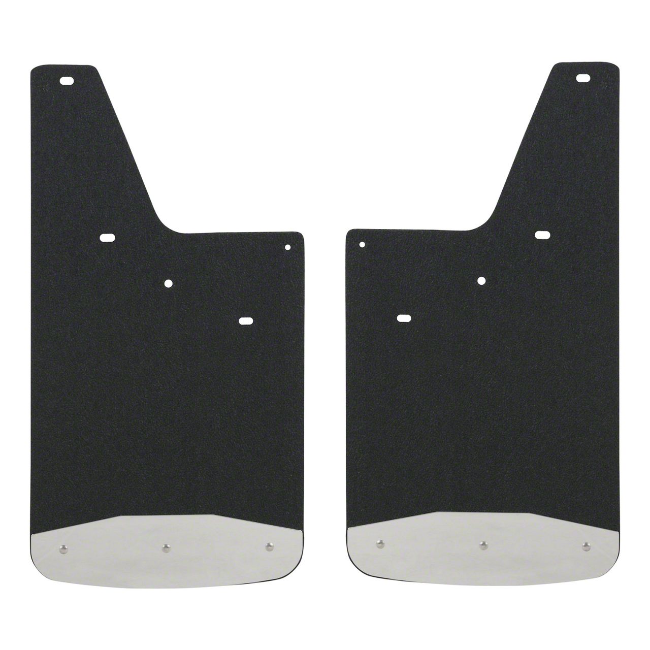 Get in Your Truck with Ease. Keep rocks and other off-road obstacles from hitting your body paint and interior with the this Textured Rubber Front or Rear Mud Guards - 12 Inch x 23 Inch. This pair of mud guards measures 12 inches by 23 inches each, featuring polished 18-gauge stainless steel plates high-strength steel brackets for extra support.
