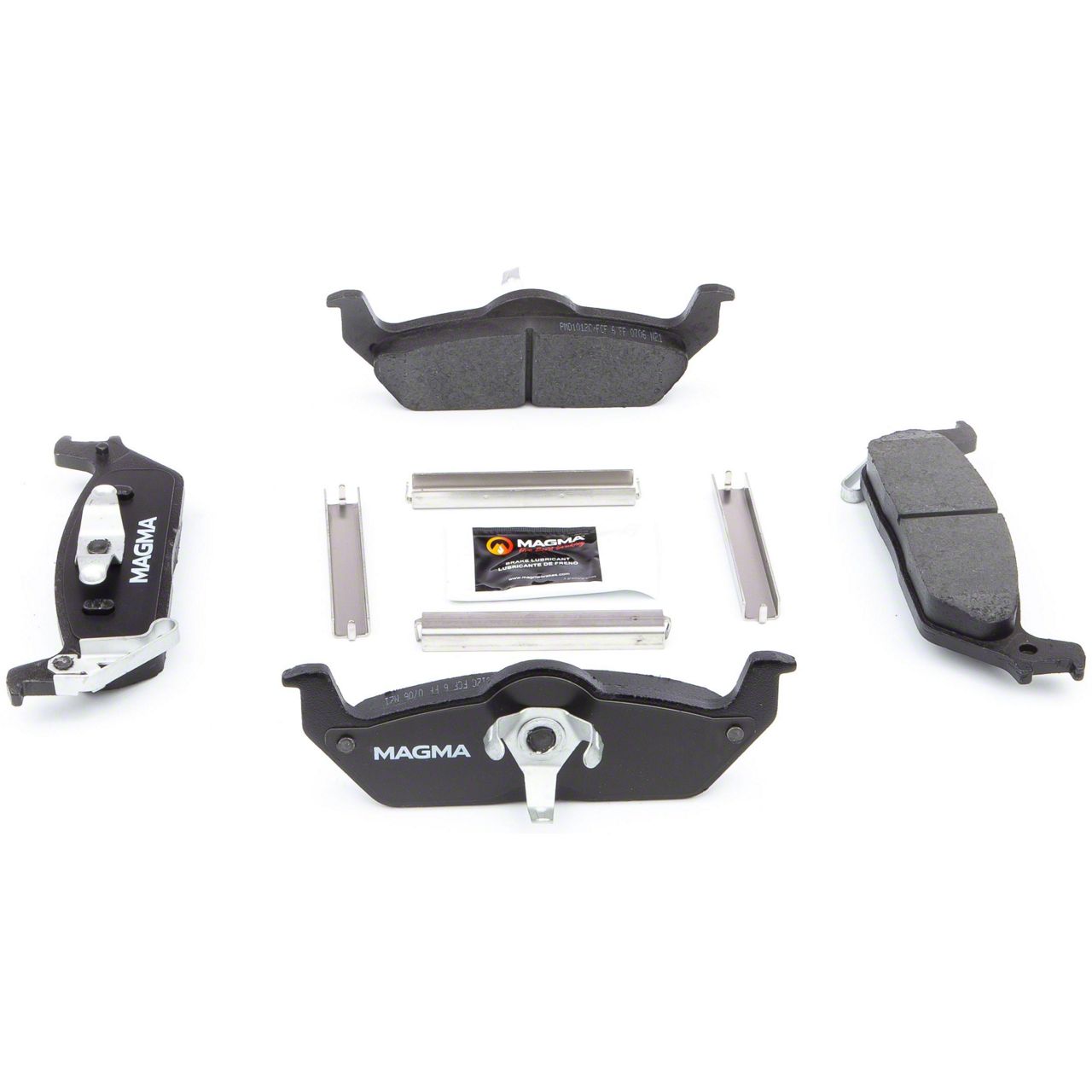 WHY MAGMA? - Today's harsh braking environments can create very high heat levels in your braking system which can reduce the vehicle's ability to stop. Extreme high temperatures can be reached in many braking situations such as - Stop and Go Traffic, Mountain Driving, Hauling or Towing, Emergency Stops, Spirited Driving and Long, Sustained Braking. At MAGMA Brakes, we use FIRE to fight FIRE. Our brake system components are made using advanced, state of the art techniques and treatments that ensure our brakes will stand up to the heat. MAGMA Premium brake pads feature... 1. Scorched, copper-free friction formulations for optimal stopping power 2. Heat-treated rubberized multi-layer shims for superior noise dampening 3. Heat-tempered stainless steel hardware kits to restore the brake pad to caliper interface (where applicable) 4. High-heat resistant brake lubricant included for lubricating critical points during pad installation
