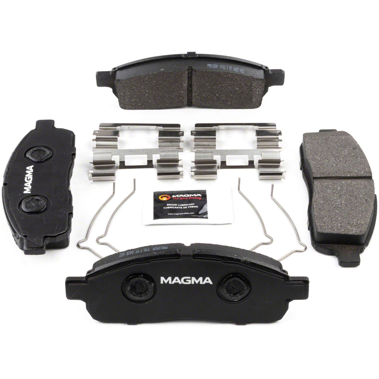 WHY MAGMA? - Today's harsh braking environments can create very high heat levels in your braking system which can reduce the vehicle's ability to stop. Extreme high temperatures can be reached in many braking situations such as - Stop and Go Traffic, Mountain Driving, Hauling or Towing, Emergency Stops, Spirited Driving and Long, Sustained Braking. At MAGMA Brakes, we use FIRE to fight FIRE. Our brake system components are made using advanced, state of the art techniques and treatments that ensure our brakes will stand up to the heat. MAGMA Premium brake pads feature... 1. Scorched, copper-free friction formulations for optimal stopping power 2. Heat-treated rubberized multi-layer shims for superior noise dampening 3. Heat-tempered stainless steel hardware kits to restore the brake pad to caliper interface (where applicable) 4. High-heat resistant brake lubricant included for lubricating critical points during pad installation