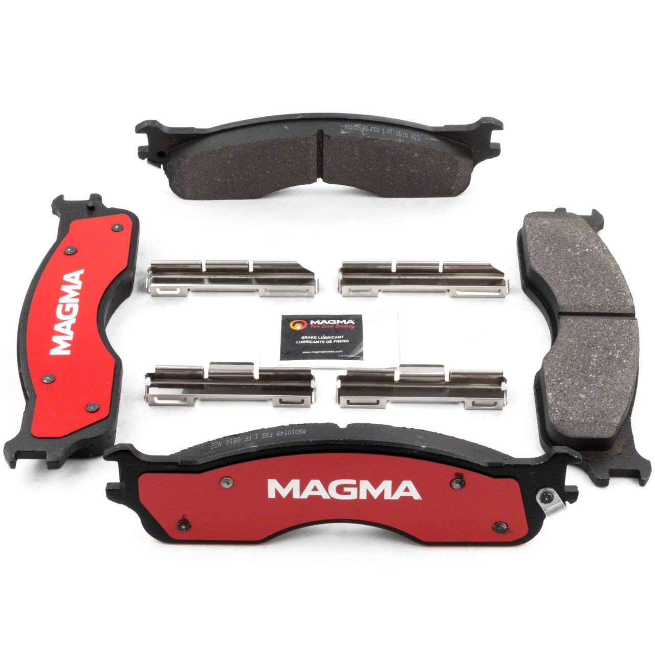 WHY MAGMA? - Today's harsh braking environments can create very high heat levels in your braking system which can reduce the vehicle's ability to stop. Extreme high temperatures can be reached in many braking situations such as - Stop and Go Traffic, Mountain Driving, Hauling or Towing, Emergency Stops, Spirited Driving and Long, Sustained Braking. At MAGMA Brakes, we use FIRE to fight FIRE. Our brake system components are made using advanced, state of the art techniques and treatments that ensure our brakes will stand up to the heat. MAGMA Severe Duty brake pads feature... 1. Advanced copper-free semi-metallic friction material for optimal stopping power and long life under severe conditions 2. Multi-layer shims for superior noise dampening 3. Heat-tempered stainless steel hardware kits to restore the brake pad to caliper interface (where applicable) 4. High-heat resistant brake lubricant included for lubricating critical points during pad installation