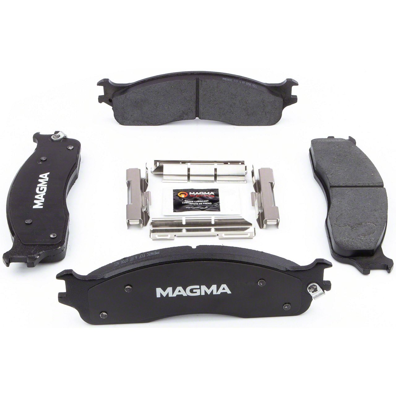 WHY MAGMA? - Today's harsh braking environments can create very high heat levels in your braking system which can reduce the vehicle's ability to stop. Extreme high temperatures can be reached in many braking situations such as - Stop and Go Traffic, Mountain Driving, Hauling or Towing, Emergency Stops, Spirited Driving and Long, Sustained Braking. At MAGMA Brakes, we use FIRE to fight FIRE. Our brake system components are made using advanced, state of the art techniques and treatments that ensure our brakes will stand up to the heat. MAGMA Premium brake pads feature... 1. Scorched, copper-free friction formulations for optimal stopping power 2. Heat-treated rubberized multi-layer shims for superior noise dampening 3. Heat-tempered stainless steel hardware kits to restore the brake pad to caliper interface (where applicable) 4. High-heat resistant brake lubricant included for lubricating critical points during pad installation