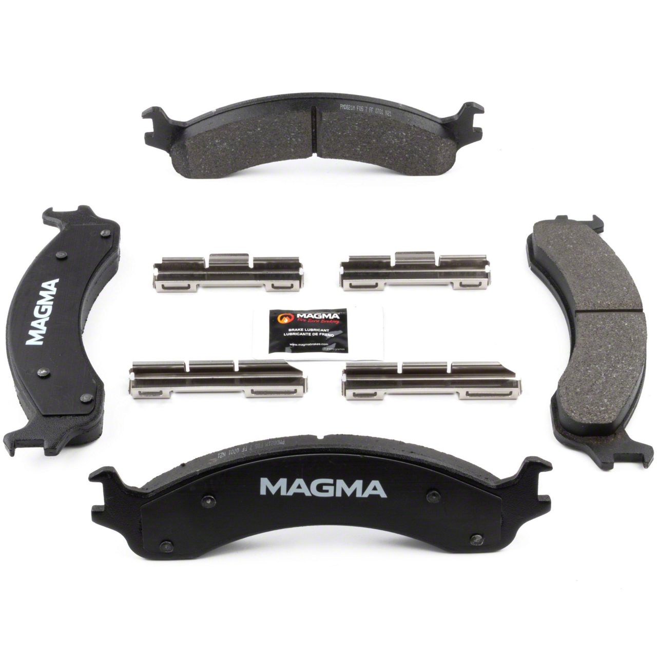 WHY MAGMA? - Today's harsh braking environments can create very high heat levels in your braking system which can reduce the vehicle's ability to stop. Extreme high temperatures can be reached in many braking situations such as - Stop and Go Traffic, Mountain Driving, Hauling or Towing, Emergency Stops, Spirited Driving and Long, Sustained Braking. At MAGMA Brakes, we use FIRE to fight FIRE. Our brake system components are made using advanced, state of the art techniques and treatments that ensure our brakes will stand up to the heat. MAGMA Premium brake pads feature... 1. Scorched, copper-free friction formulations for optimal stopping power 2. Heat-treated rubberized multi-layer shims for superior noise dampening 3. Heat-tempered stainless steel hardware kits to restore the brake pad to caliper interface (where applicable) 4. High-heat resistant brake lubricant included for lubricating critical points during pad installation