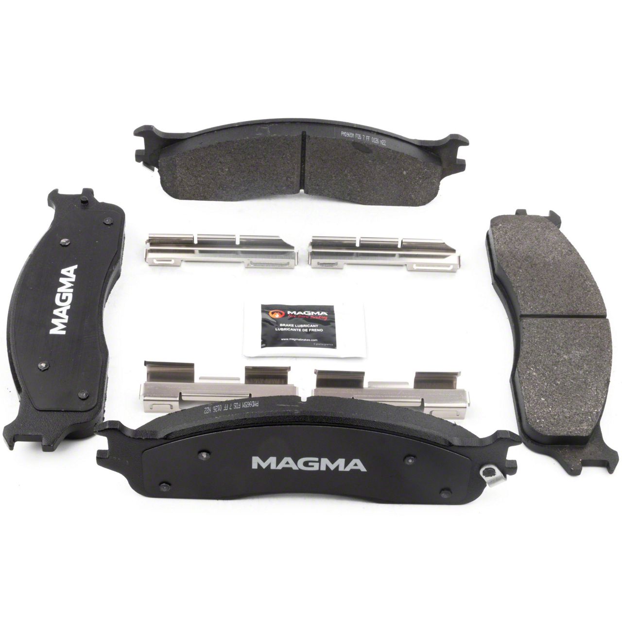 WHY MAGMA? - Today's harsh braking environments can create very high heat levels in your braking system which can reduce the vehicle's ability to stop. Extreme high temperatures can be reached in many braking situations such as - Stop and Go Traffic, Mountain Driving, Hauling or Towing, Emergency Stops, Spirited Driving and Long, Sustained Braking. At MAGMA Brakes, we use FIRE to fight FIRE. Our brake system components are made using advanced, state of the art techniques and treatments that ensure our brakes will stand up to the heat. MAGMA Premium brake pads feature... 1. Scorched, copper-free friction formulations for optimal stopping power 2. Heat-treated rubberized multi-layer shims for superior noise dampening 3. Heat-tempered stainless steel hardware kits to restore the brake pad to caliper interface (where applicable) 4. High-heat resistant brake lubricant included for lubricating critical points during pad installation