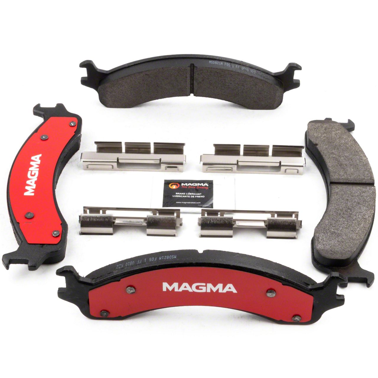 WHY MAGMA? - Today's harsh braking environments can create very high heat levels in your braking system which can reduce the vehicle's ability to stop. Extreme high temperatures can be reached in many braking situations such as - Stop and Go Traffic, Mountain Driving, Hauling or Towing, Emergency Stops, Spirited Driving and Long, Sustained Braking. At MAGMA Brakes, we use FIRE to fight FIRE. Our brake system components are made using advanced, state of the art techniques and treatments that ensure our brakes will stand up to the heat. MAGMA Severe Duty brake pads feature... 1. Advanced copper-free semi-metallic friction material for optimal stopping power and long life under severe conditions 2. Multi-layer shims for superior noise dampening 3. Heat-tempered stainless steel hardware kits to restore the brake pad to caliper interface (where applicable) 4. High-heat resistant brake lubricant included for lubricating critical points during pad installation
