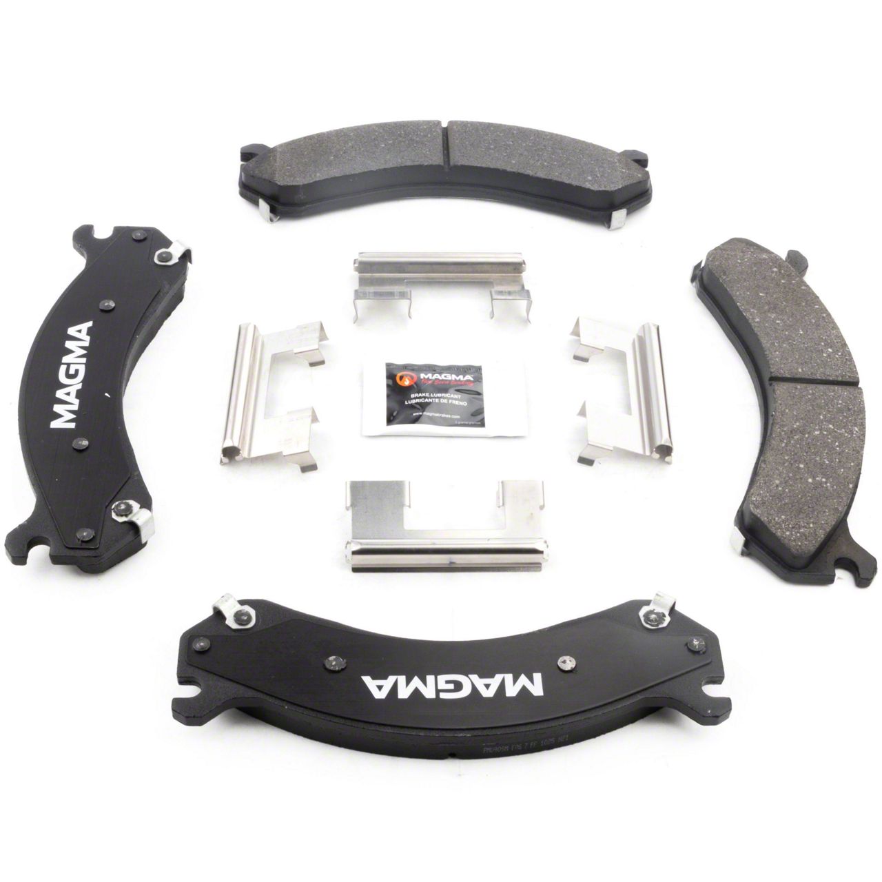 WHY MAGMA? - Today's harsh braking environments can create very high heat levels in your braking system which can reduce the vehicle's ability to stop. Extreme high temperatures can be reached in many braking situations such as - Stop and Go Traffic, Mountain Driving, Hauling or Towing, Emergency Stops, Spirited Driving and Long, Sustained Braking. At MAGMA Brakes, we use FIRE to fight FIRE. Our brake system components are made using advanced, state of the art techniques and treatments that ensure our brakes will stand up to the heat. MAGMA Premium brake pads feature... 1. Scorched, copper-free friction formulations for optimal stopping power 2. Heat-treated rubberized multi-layer shims for superior noise dampening 3. Heat-tempered stainless steel hardware kits to restore the brake pad to caliper interface (where applicable) 4. High-heat resistant brake lubricant included for lubricating critical points during pad installation