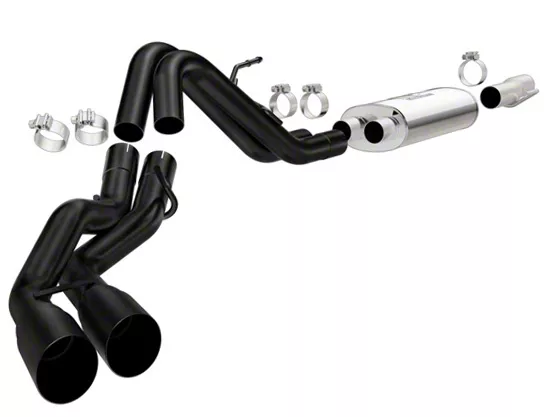 Serious Exhaust Notes. Dress up your pickup's exhaust system while taking on deep dark tones with this black coated stainless exhaust system. The kit is made to really add depth to your truck's exhaust sounds that makes it stand out compared to the other vehicles on the road. You'll feel the raw power the moment your truck is started up after the kit is installed. That's the biggest benefit of this custom exhaust setup from Magnaflow, it's designed to create a powerful sound that you can be proud of.