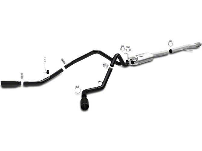 Improved Exhaust Sound. It's important to ensure that your Sierra maintains a respectable, smooth and well-toned exhaust sound. However, this shouldn't affect the performance of your vehicle. As such, you should source for an exhaust system that perfectly combines high-performance and moderate sounds. This rare combination can only be found in the Magnaflow Street Series Black Cat-Back Exhaust - Split Rear Exit.