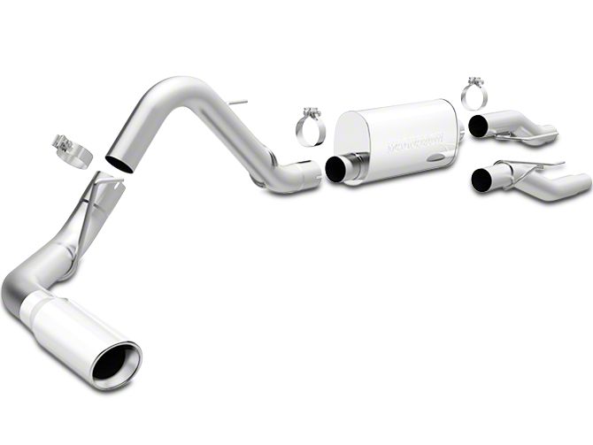 Faster and Stronger. This Magnaflow Street Series cat-back exhaust will add power and performance to your F-150 pickup truck. It does so with a carefully designed set of pipes with minor curves and a very wide diameter. The 3" diameter stainless steel mid-pipe and tailpipe are larger than average. The final 4" tip is larger as well, and leave you with smooth flowing exhaust that is not going to slow down at all. Another huge benefit of this kit is that it uses mandrel-bends, that aren't constricted at all, so you get the same diameter throughout.
