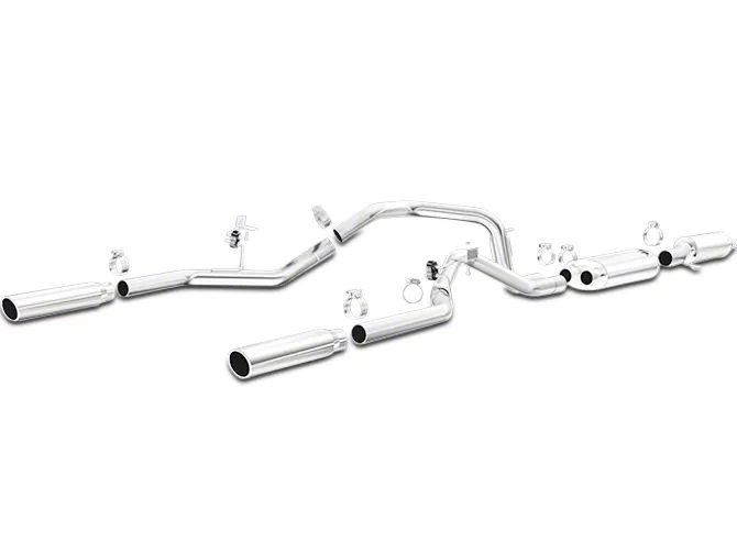 Application. The Magnaflow Street Series Split Rear Exit Cat-Back Exhaust System is specifically designed to fit on the 2011-2014 5.0L V8 F-150s with the following cab and bed sizes. Regular Cab with a 6.5 ft. Bed (2013-2014 Models Only). Regular Cab with an 8 ft. Bed. SuperCab with a 6.5 ft. Bed. SuperCrew with a 5.5 ft. Bed. SuperCrew with a 6.5 ft. Bed