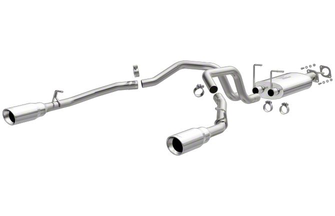Civilized Deep Tone. Improve your exhaust note with the Magnaflow Street Series Dual Exhaust System with Polished Tips. Instead of a flat monotonous factory exhaust sound, your truck will have a deeper and more attractive growl at a civilized volume. Your neighbors will definitely thank you for it.