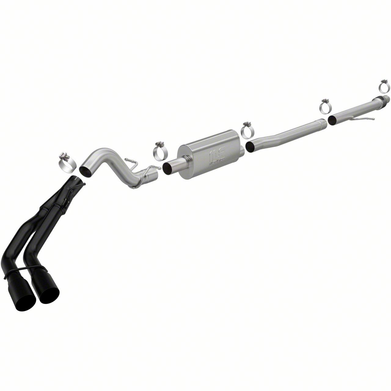 Installation. Designed for straightforward installation, this exhaust system serves as a direct replacement for your factory system. The kit includes all necessary components, such as the exhaust assembly and tips, for a seamless bolt-on installation.