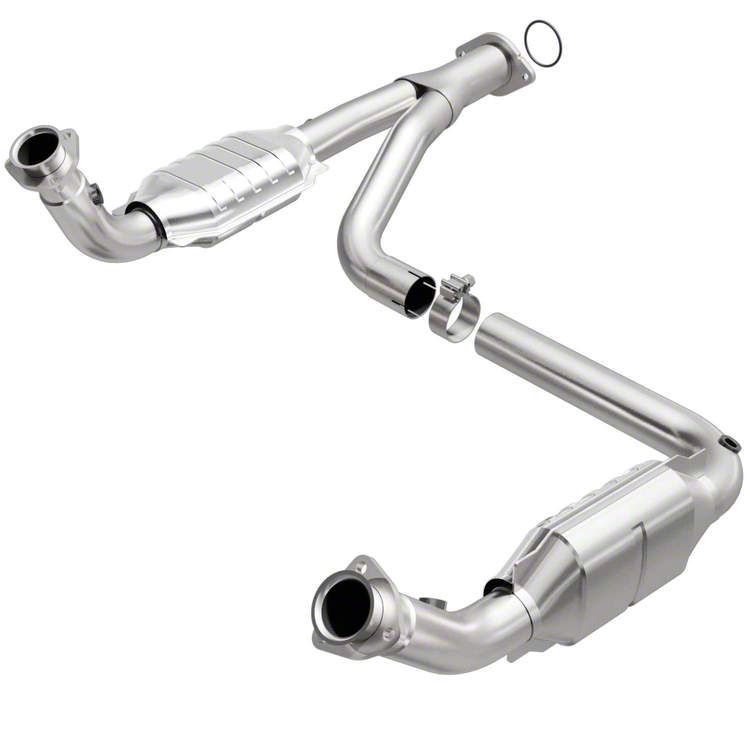 Robust Heat Shield. Paired with a robust heat shield, this catalytic converter helps to reduce heat transfer and ensures optimal performance under varying conditions. The bolt-on direct installation method allows for easy and convenient installation without the need for modifications. Manufactured with a ceramic honeycomb substrate material, the Magnaflow Direct-Fit Catalytic Converter effectively reduces harmful emissions while maintaining proper exhaust flow.