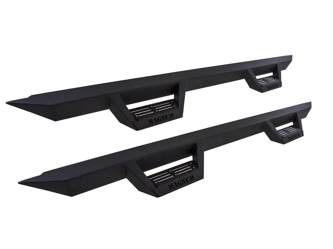 Non-Sip Treads. Designed with non-slip Magnum branded step treads, these side step bars offer secure footing for easy and safe entry and exit from your vehicle. The precision-engineered construction from robust 10-gauge steel material ensures durability and longevity, standing up to the rigors of daily use.