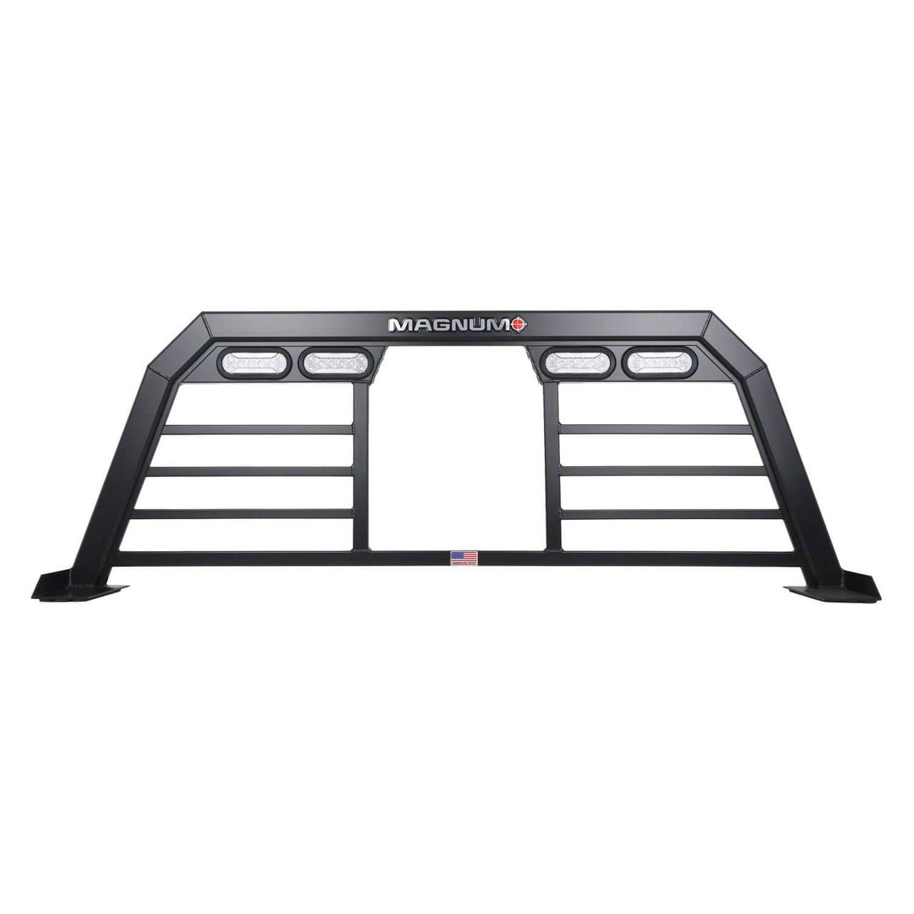 Heavy-Duty Rack with Integrated Utility. The Magnum High Pro Headache Rack with Lights and Window Cut-Out is built for serious F-350 Super Duty Lariat owners who need durability and functionality. It offers the clearance of a standard rack with the sleek profile of a low-pro design, making it ideal for hauling, worksite protection, and improved rear visibility, all while adding rugged style to your F-350 Super Duty Lariat.
