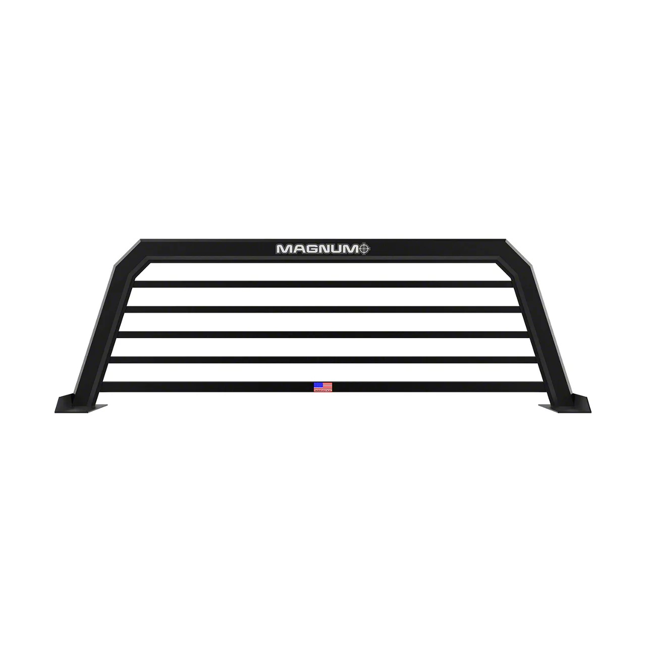 Rugged Protection and Style. The Magnum Standard Headache Rack is designed to provide superior rear window protection while adding a bold, aggressive look to your RAM 1500. Built for both function and style, this rack shields your cab from shifting cargo while maintaining excellent visibility. Its versatile design is compatible with most tonneau covers, making it a practical upgrade for both work and recreational use.