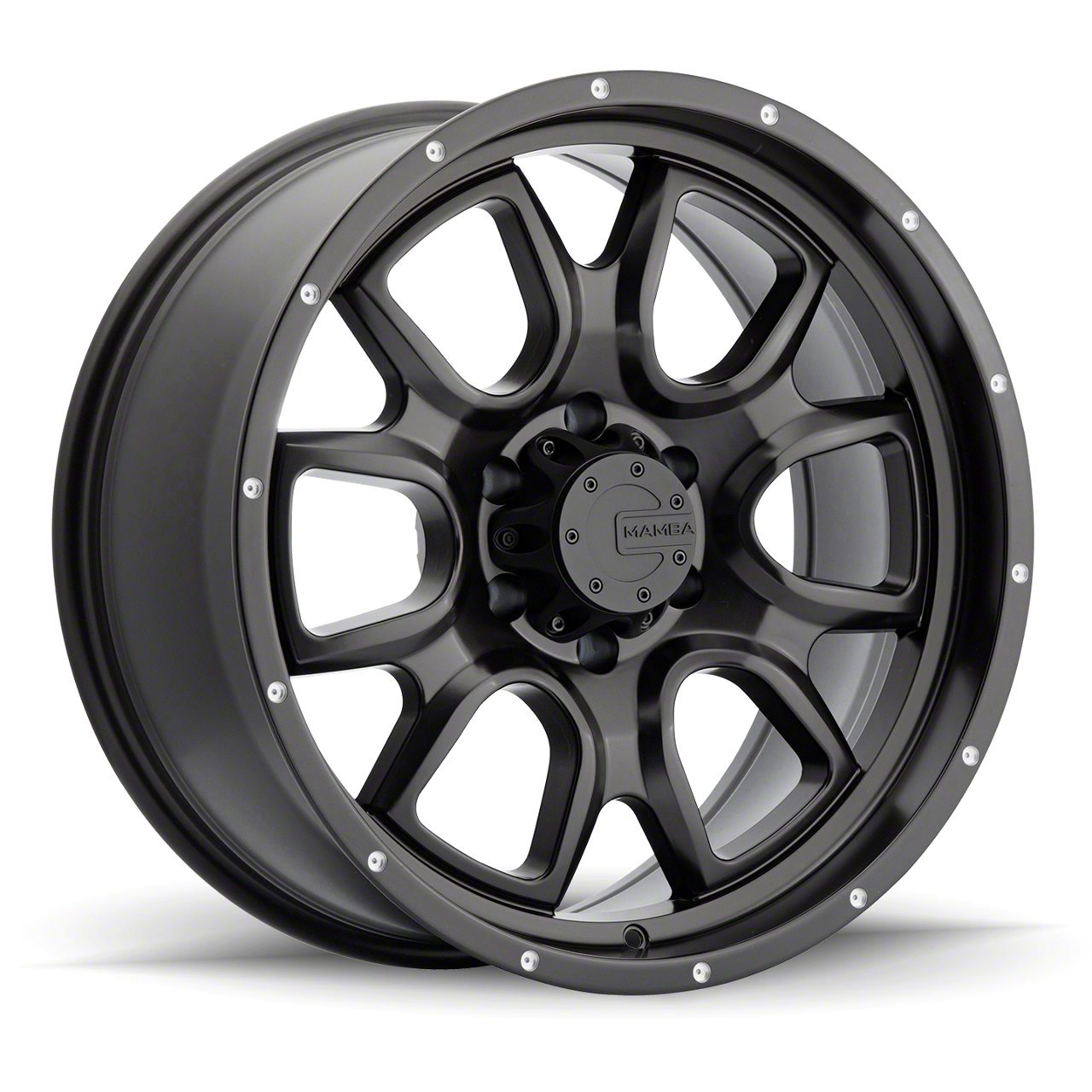Mamba Offroad Wheels Type M19 Matte Black 8-Lug Wheel; 20x9; 19mm Offset - Enhance your vehicle's style with the Mamba Offroad Wheels wheel. This wheel's distinctive design and finish complement your vehicle's aesthetics, making a bold statement. It's crafted to accentuate the unique character of your car, emphasizing a premium and robust appeal.