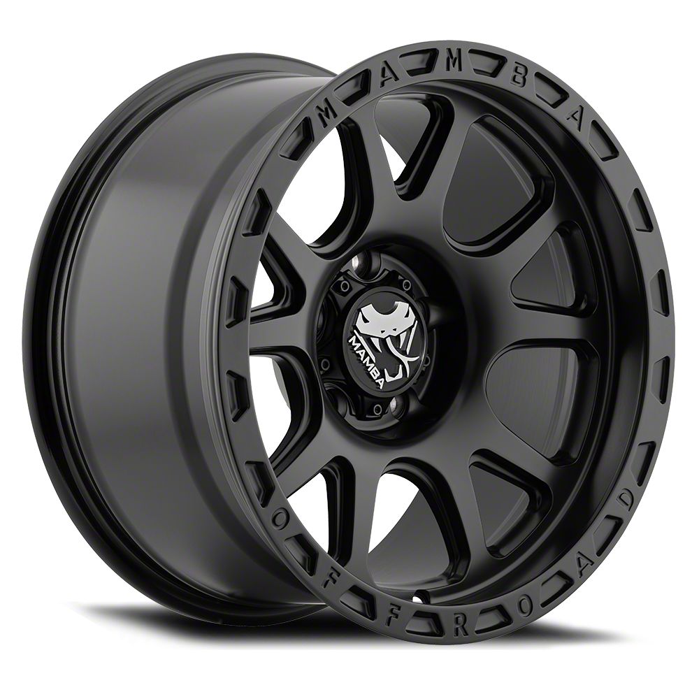Mamba Offroad Wheels M27 Stippled Matte Black 6-Lug Wheel; 18x9; 12mm Offset This wheel features sophisticated styling that enhances your vehicle's appearance with refined design elements and premium craftsmanship. Its distinctive aesthetic provides an upgraded look that complements a wide range of vehicles. The thoughtful engineering ensures a proper fit while delivering lasting visual appeal.