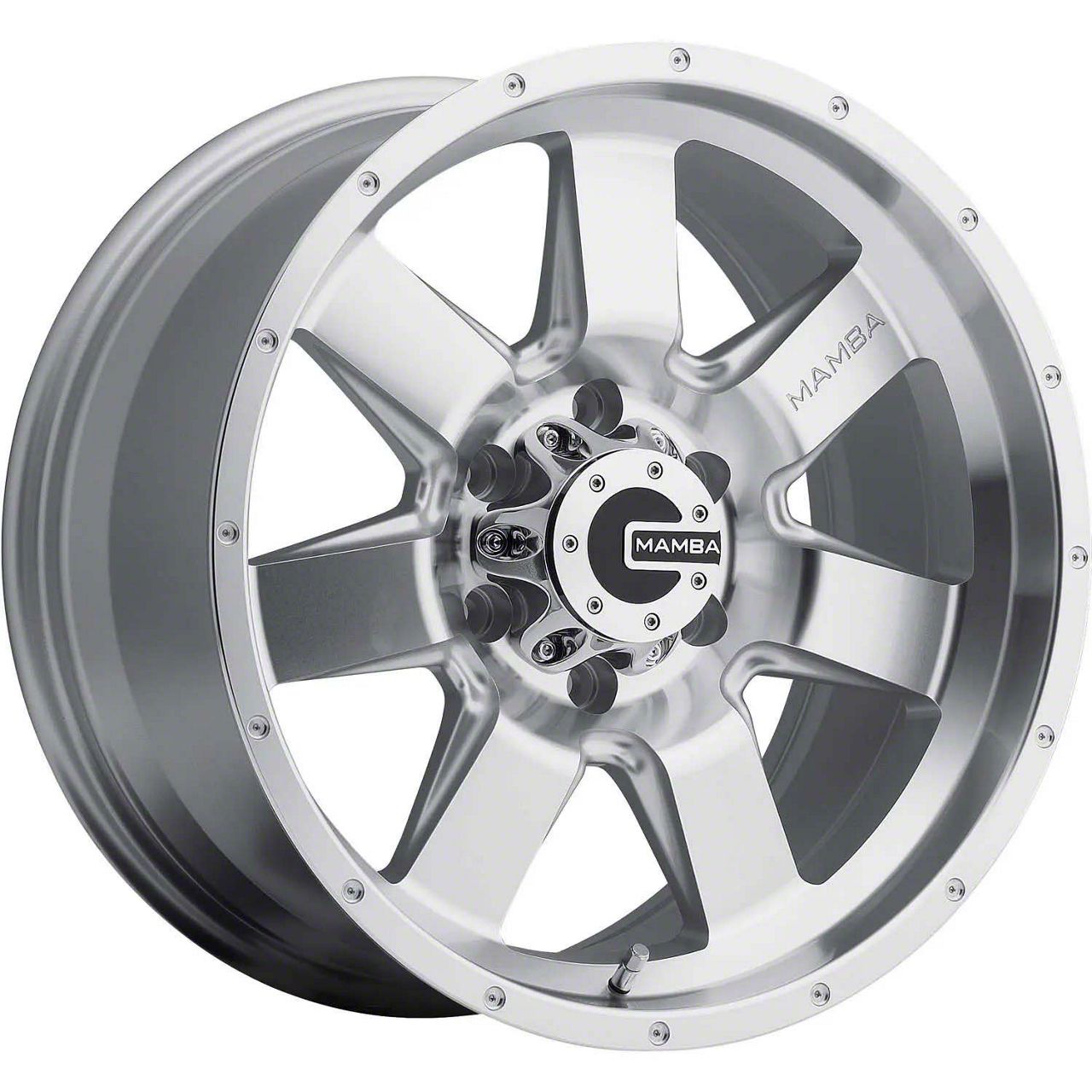 The 20x9 Mamba Offroad Wheels M14 Machined Face Silver 6-Lug Wheel is completed in a high-quality silver finish that will be the envy of everyone. For added protection and good looks, there is a durable clear coat that handles the rigors of daily driving.